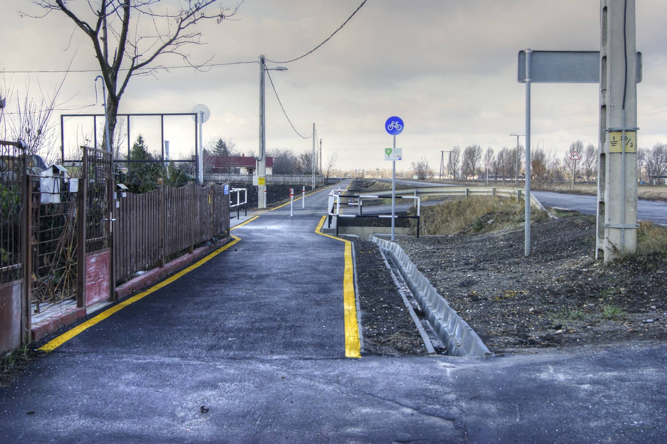 @BalageUMF: Alapvetően az a baj, hogy sajnos nem mindenki képes azt a fajta közlekedési kultúrát alkalmazni, amit Te is felvázoltál! Ma mentem ki végigfotózni a szakasz városi részét is. Ott majd láthatod, hogy két "vendéglátóipari egység" is -mindenki tudja mire gondolok- található, melynek kedves vendégei egyfelől a szabályosan közlekedő kerékpárosokra, másfelől az itt lakókra veszélyesek! Sok kerítés továbbá teljesen hézagnélküli, valamint olyan magas, hogy tényleg nem lehetne észrevenni egy ilyen helyről kirohanó kisgyereket -márpedig egy komplett óvoda is van az említett szakaszon-, még ha másfél méterre mennénk beljebb sem. A kérdés megoldása: egyetlen ságra felfestéssel meg lehetne szabni, hogy a kerékpárosok meddig közelíthetik meg a kerítéseket, valamint a lakóövezetre figyelmeztető táblákkal lehetne figyelmeztetni a gyalogos forgalomra is!