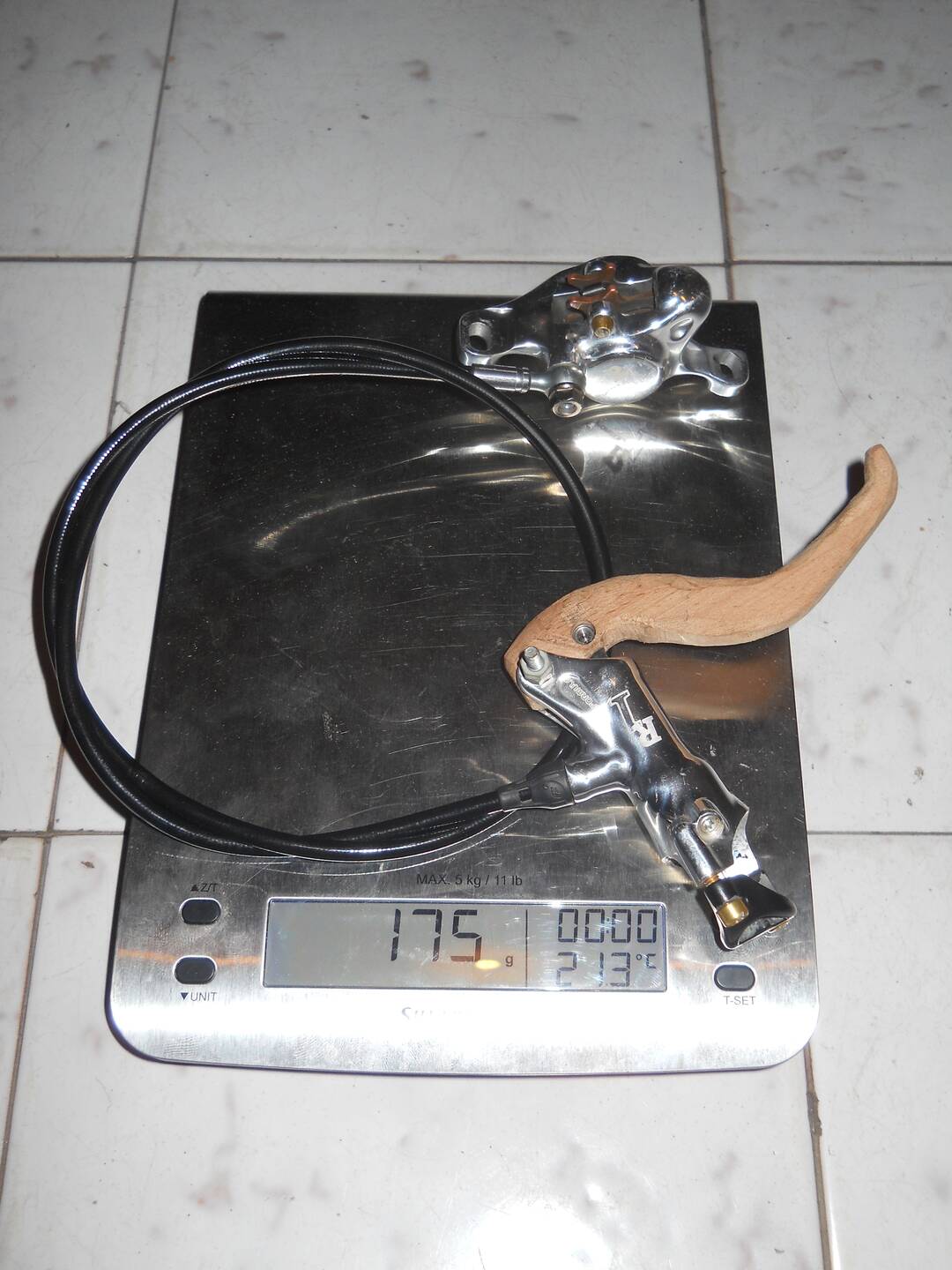 első, még vágatlan fékcsővel, kopott acéllapos szinteres betéttel, vágatlan fékkar csavarral és a bükkfa karral.