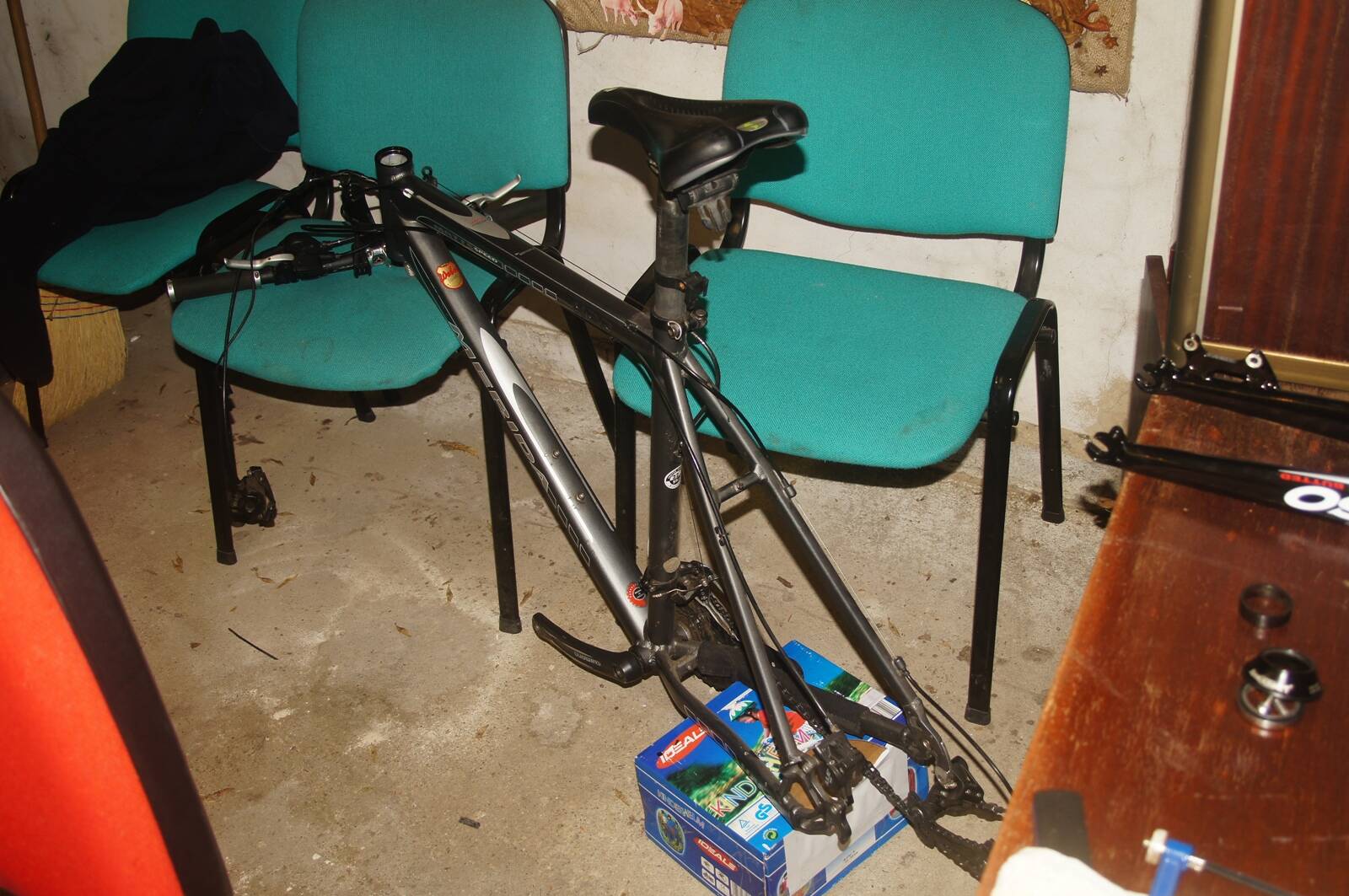 @gyuladaniel94: A helyi szervizben befogós állvány van és a srácok egy eldobott belsővel "párnázták" ki a befogó pofáit. Kellően tart és nem sérti a nyeregvázcsövet, sem a nyeregcsövet ;). Pedig az is egy 80 rugós állvány, de át van alakítva. A gyári talpat élből levágták róla és egy tárcsa lap van alárakva. A fullosan megpakolt postás bringát elbírja, pedig az nem 30 kiló... :D.