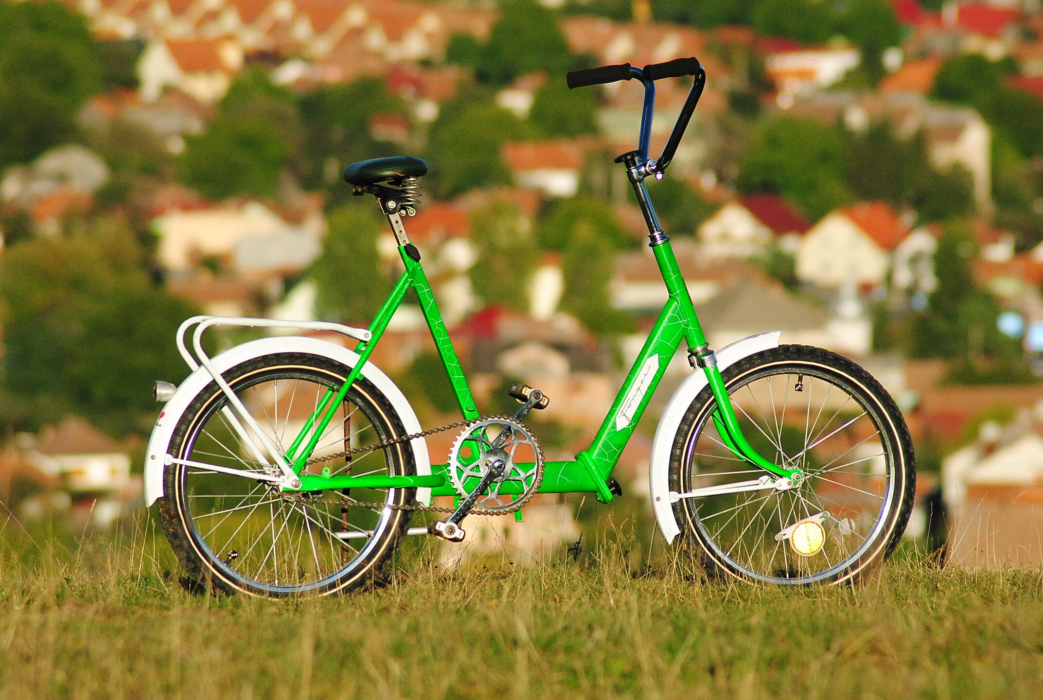 Kellően elmosódott háttér, félig-meddig városi környezet: illik a géphez, és nem vonja el túlságosan a figyelmünket. Valóban, mint többen kifogásolják, az őszi hangulat kevéssé érződik, csupán a száraz fűszálak az előtérben emlékeztetnek rá. Maga a járgány remek, a színek is (feltehetően nem a Ferencváros miatt). Az ülés (nem nyereg) sajátos, "élőben" még nem is láttam ilyet. (Az első lámpa hiánya miatt ellenben büntetés járna.) Nem kiemelkedően jó kép, viszont jó szívem van...