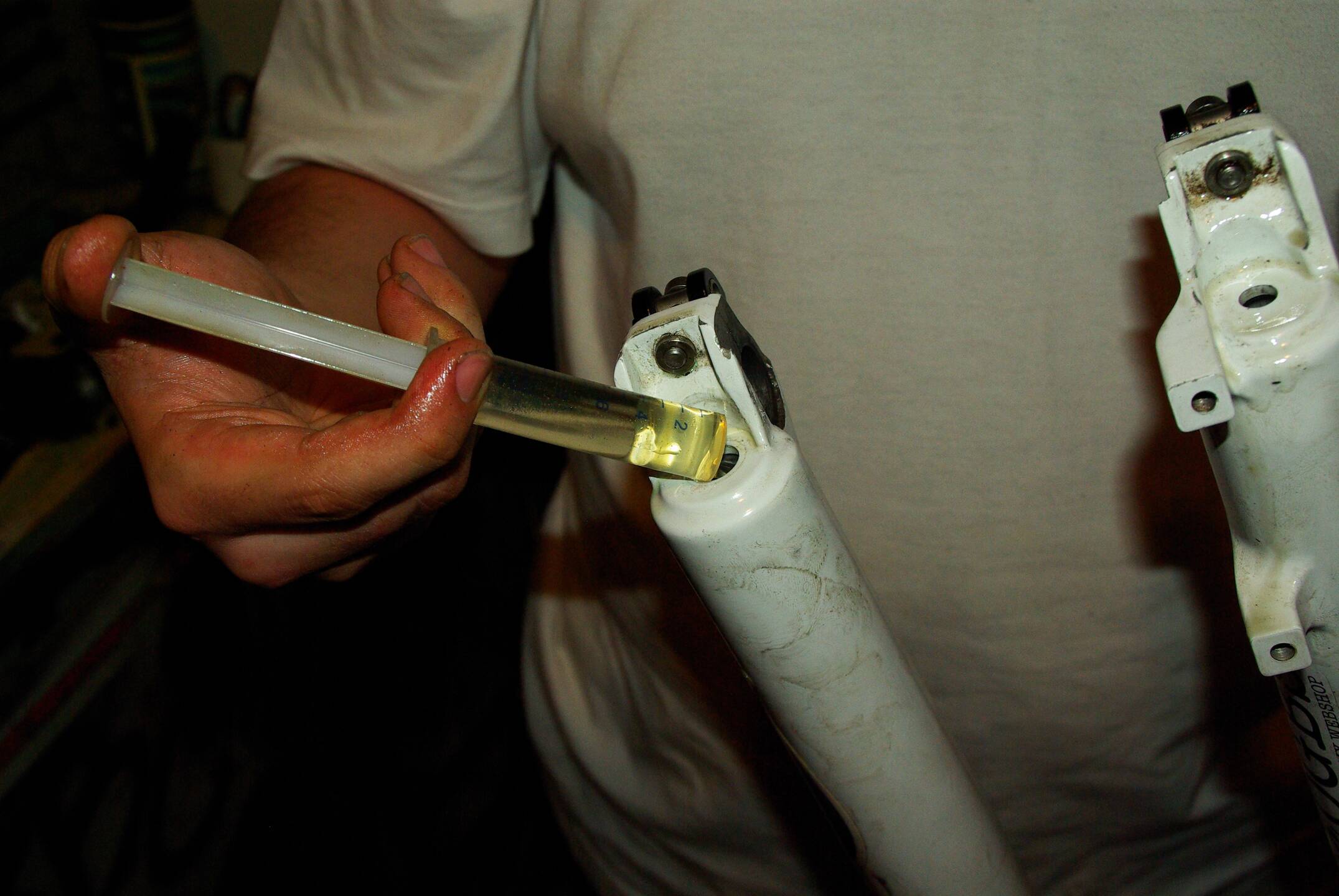 @Fox Racing Shox: ebbe ennyi kell. de hivatalosan a levegős oldalba 10ml a csillapítás felőlibe meg 20ml