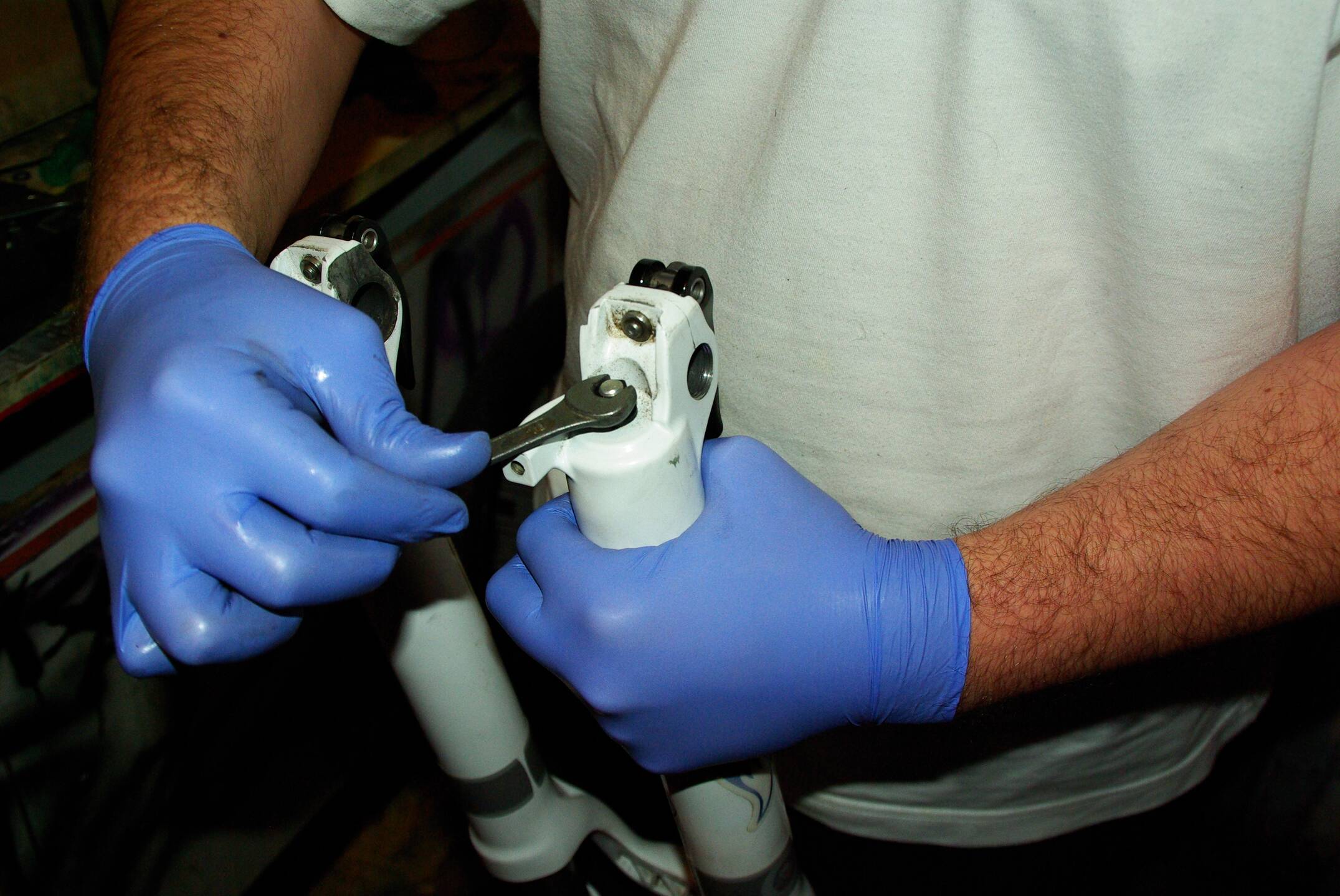Majd csavarjuk ki az alján is a csavart. Az anya eltávolítása után egy kicsit kell ütni a kilógó szárra, hogy elengedje a lábat.