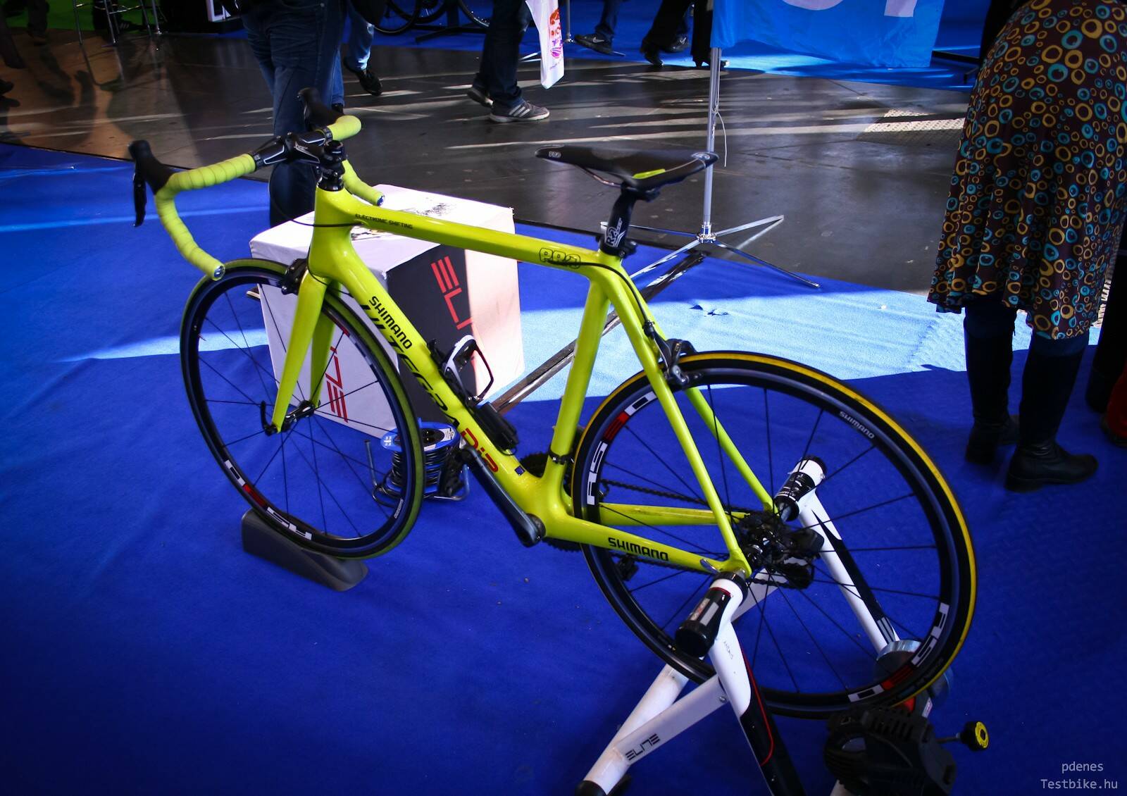 Vannak dolgok, amik nem változnak. Így a Shimano standján idén sem működött a Di2 rendszer a neonződ bringán :) Mentségükre szóljon, hogy a szétfűrészelt vázas bemutatóbringákon rendesen működött. Nyilván azért találjuk ezen a zöldikén mindig vállalhatatlan állapotban a rendszert, mert boldog boldogtalan ráül és kattogtatja össze-vissza, és hát ezek szerint hosszútávon nem teljesen hülyebiztos a rendszer :)