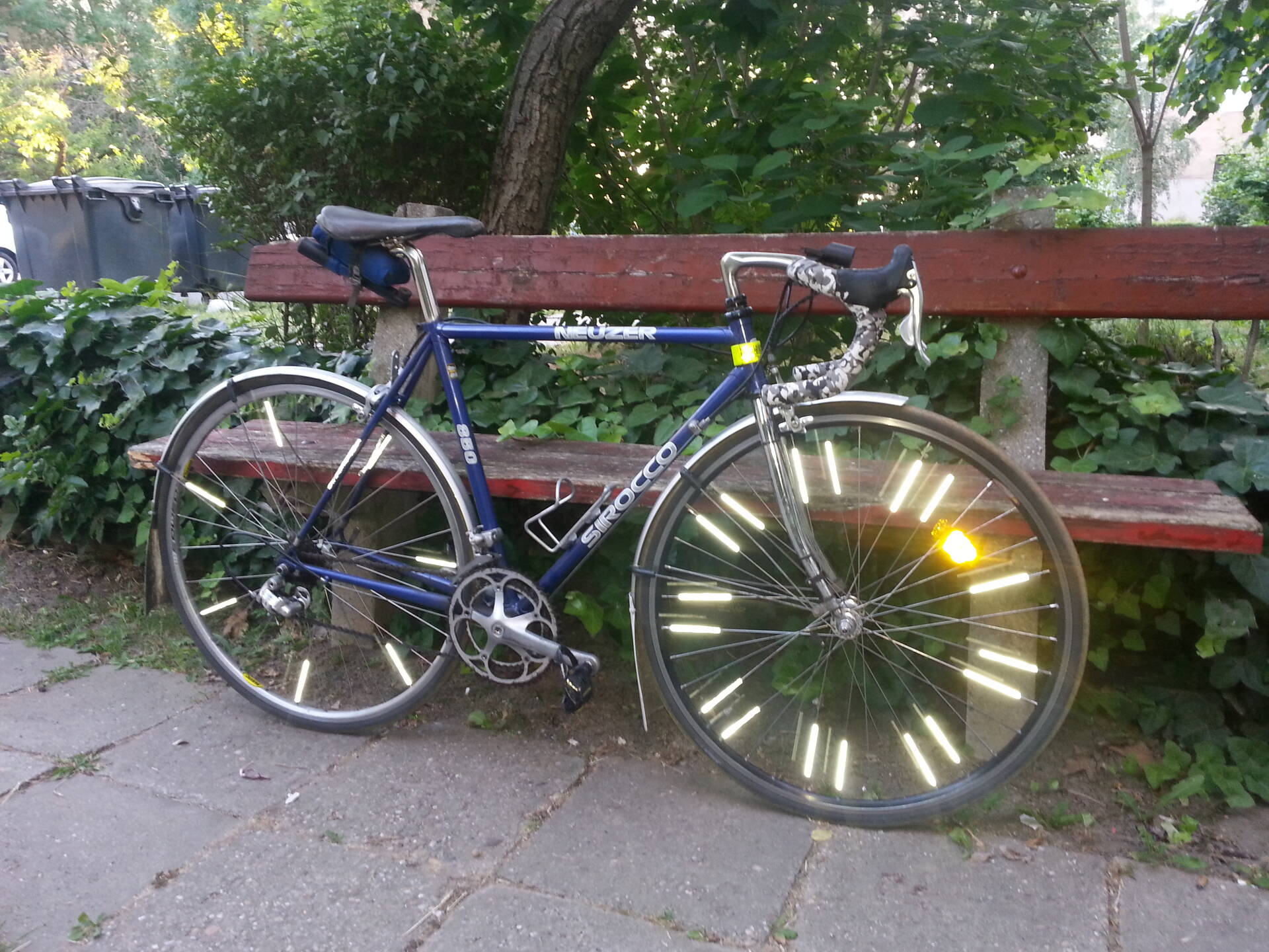 alkatrész lista: veloce 9 sp ergopower,veloce 9 sp hátsó váltó,RX 100-as első váltó,campa stratos hajtómű (53/39),és campa stratos közép csapágy,pezsgő 105-ös fékek,mavic cosmos hátsó kerék,9-es campa sor (13-23),campa stratos első agy,alpina 2-1,8-2 mm-es küllők (36 db),fir felni,flite titanium nyereg (ez sajna már elég viseltes,kiült),kalloy nyereg cső (titán színű),3ttt evol 2002 stucni (titán szín,125 mm),3ttt forma sl kormány (acél szürke),deore lx kormány csapágy,neuzer sirocco "cromo" váz,villa.