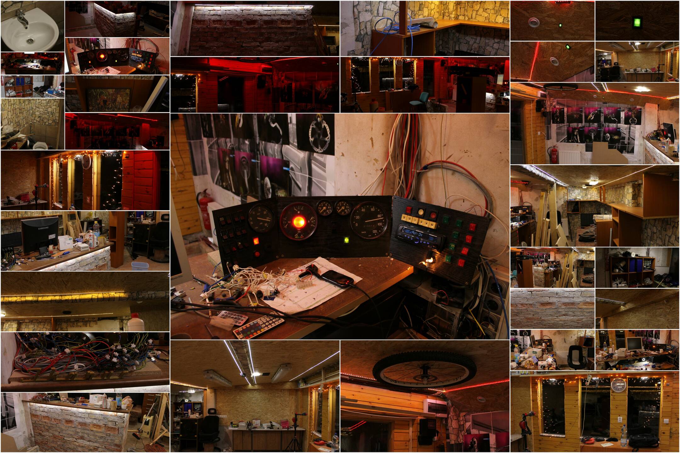 12V: 60 méternyi ledszalag, 40 ledpanel, és az autórádió/audiorendszer miatt van. Úgy sikerült összehozni az egészet, hogy 12V világítás mellé lényegében éjszaka sem szükséges 230V-os világítást használni. + 12 V van a vizsesblokkban és a konyhában is.