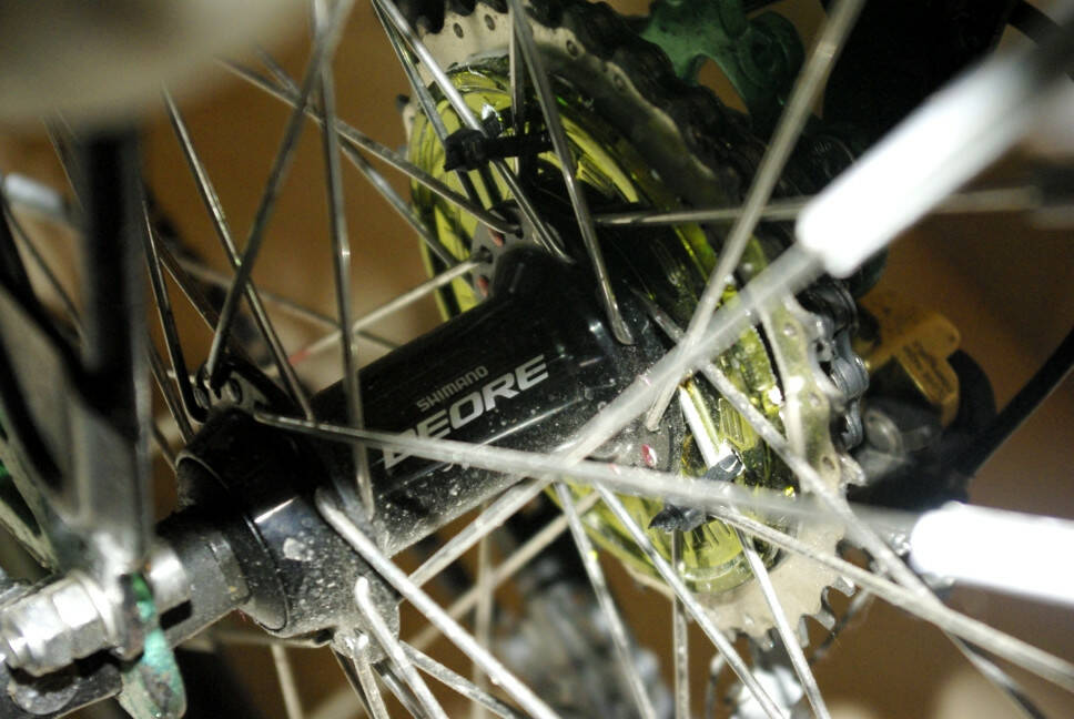 Multivitamin doboz (levágott kivágott) kupakja a kerékagy és fogaskoszorú között: pont olyan széles, hogy ha -esetleg- beváltana a váltó a küllők közé, akkor nem akad össze minden. Bár a Saint váltó sose tenne ilyet, de az ördög és az alvás viszonya közismert.