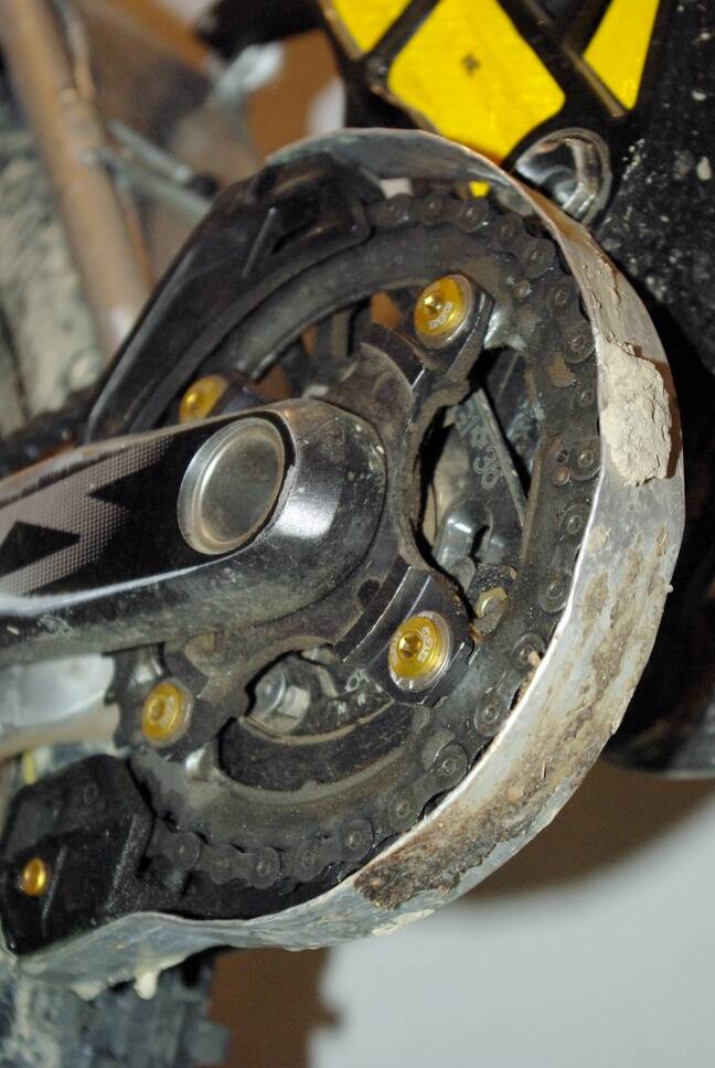 improvizált láncvédő sár ellen E13 LG1 láncterelőn, pocsolyában és homokban való kipróbálás után