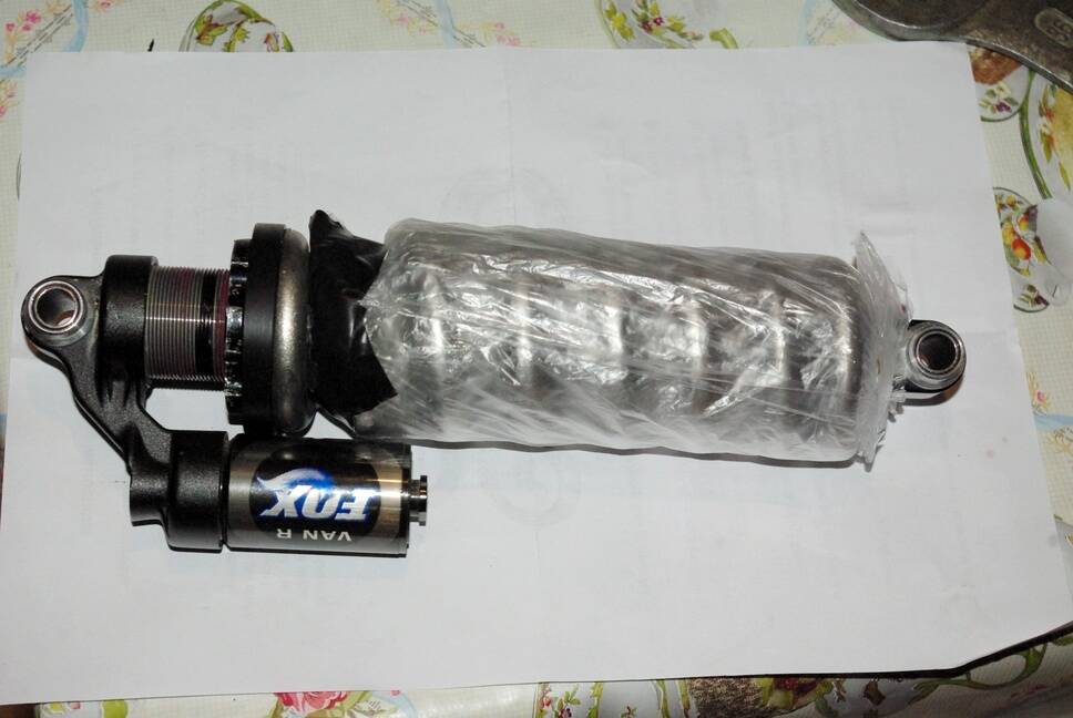 Egyelőre improvizáltam egy nejlonzacsiból porvédőt, majd ha kedvem lesz, varrok textilből. A régi rugó 54 mm széles, a titánrugó szélesebb, 57 mm (ez volt az egyedi igényem a gyártó felé, szélesebb rugó nem fér el a vázban.)