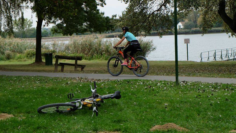 Kifektettem a bringámat és magamat is, de a háttérben kolléga csaj még igyekszik.