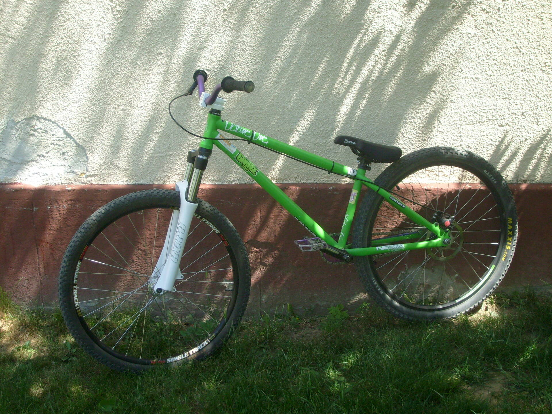 kapott egy új első kereket is - dmr tőcsavaros agy - sun single track felnibe fűzve - így már egész pofás volt