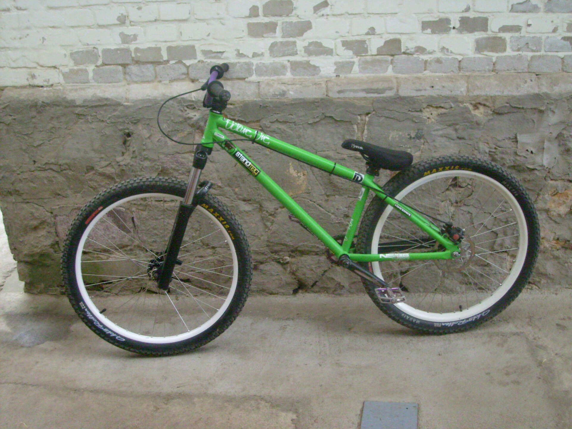 elöl a fekete single track le lett fújva fehérre, hogy passzojon a nostrum helyére jött sun s-typehoz és a kenda k-rad szett helyére felkerült egy 2.2 es maxxis holy roller szett