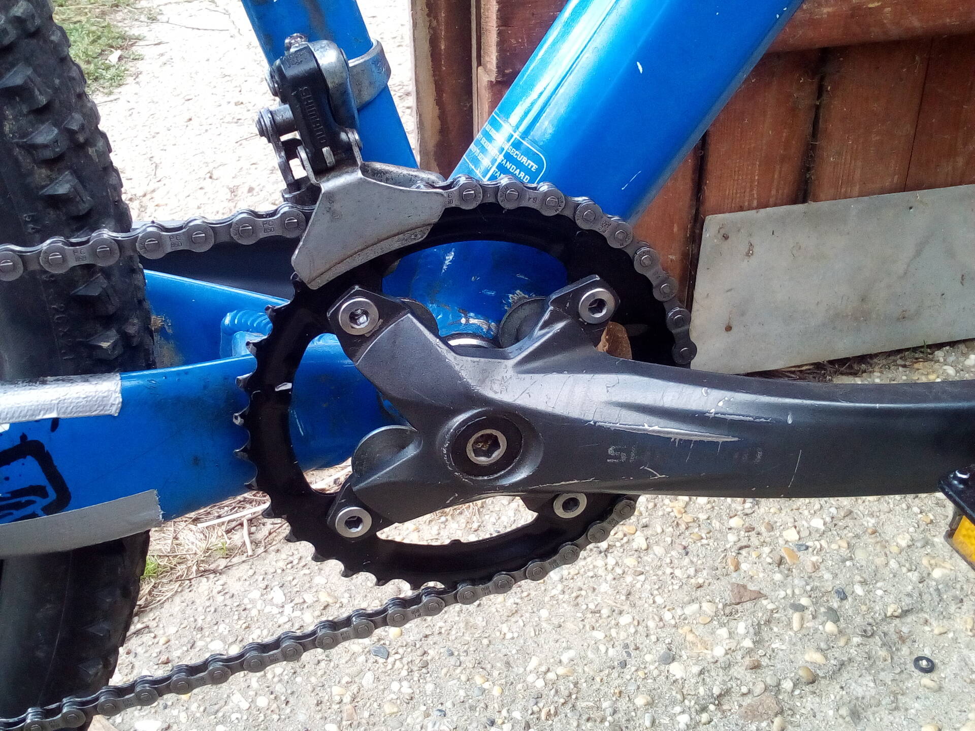 Láncvezetőt fabrikáltam egy régi Shimano első váltóból az asszony 1x8 sebességes gépére. Ha jól olvastam ki a váltóról a feliratokat, FD-TY10 tipusú volt és 1980-as évjáratú. :) Most már nem nagyon kell aggódni hogy beesik a lánc középre, bár eddig is csak én őrültködtem a bringával annyira hogy ez megtörténjen...