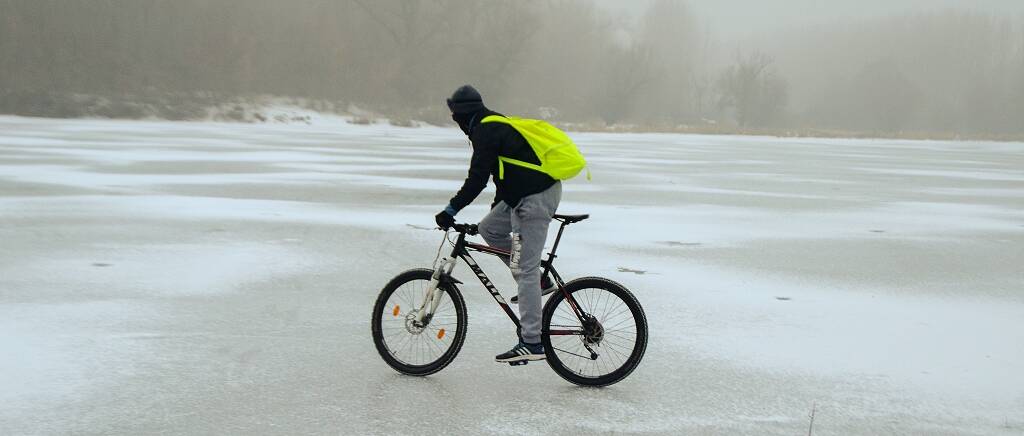 Téli bringázás (a befagyott Tisza-holtágon :))