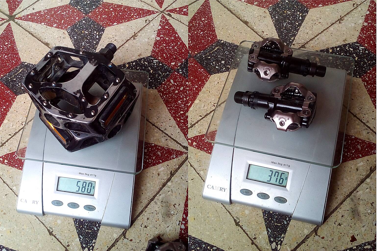 ha már épp csere volt, lemértem mindkettőt. Balra a régi, jobbra az új pedál. Nem gondoltam hogy a régi platform ennyit nyom!