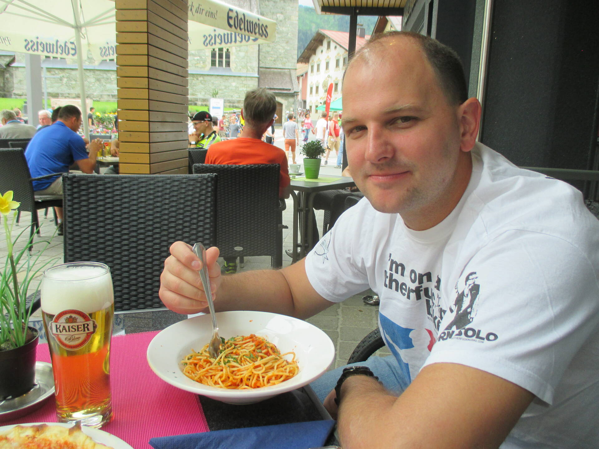 Verseny napján meg a La Vida-ban ettünk, az meg egy olasz tulajos, de legalább főúton volt, jó helyen.