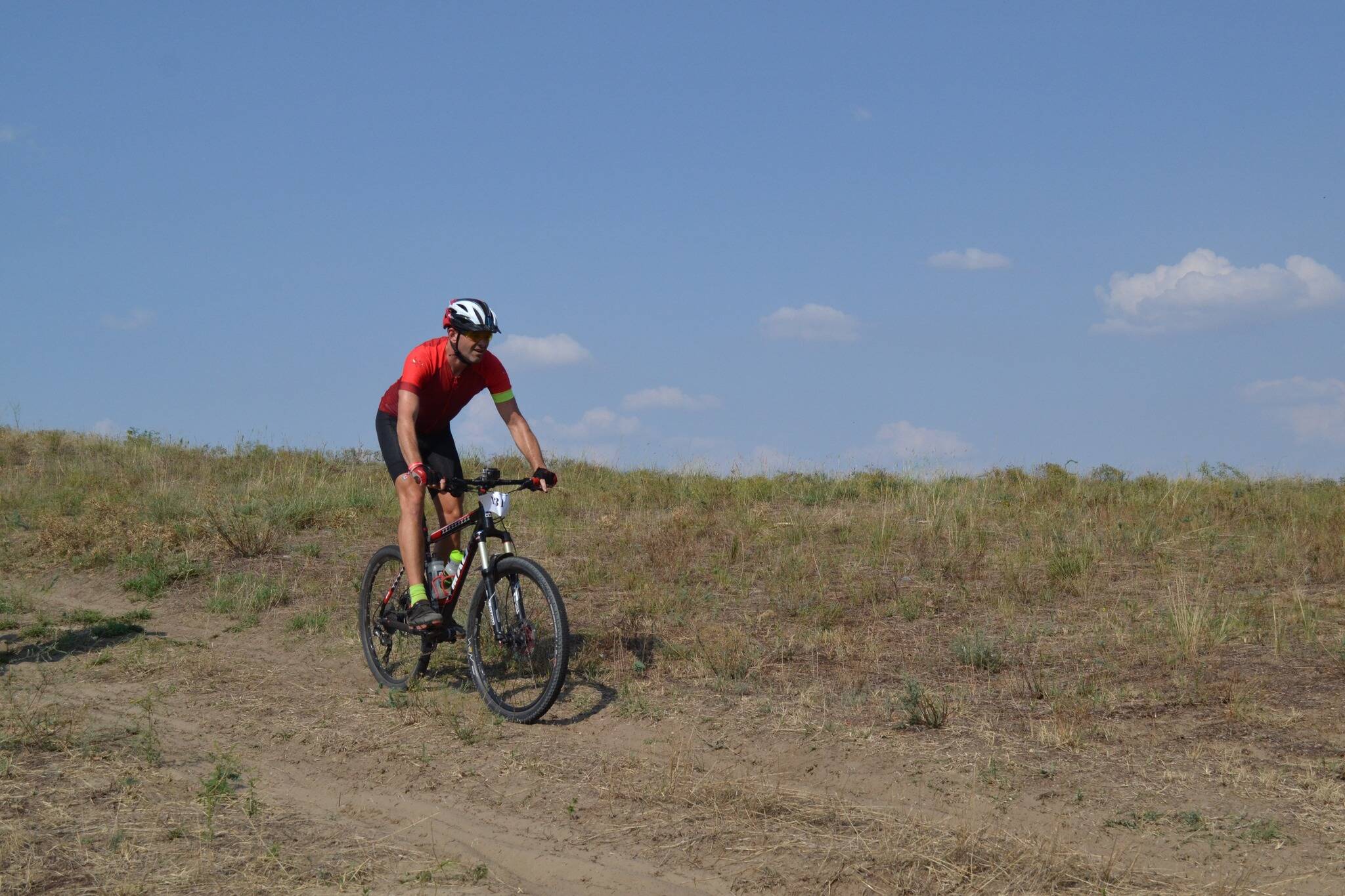 Kegyetlen egy menet volt. Sokkal keményebb mint egy hegyi rövidtáv. 2 óra csőgázon, pihenés nélkül. Itt épp a dombról gurulok lefelé, a Nyakvágóról, amelyről a rendezvény is kapta a nevét. Ez a 30-40 méter volt összesen a 42km-es homokos pályából amin épp nem kellett pedálozni. Nagy örömömre dobogón végeztem, jól esett egy kis sikerélmény a szezon zárására.