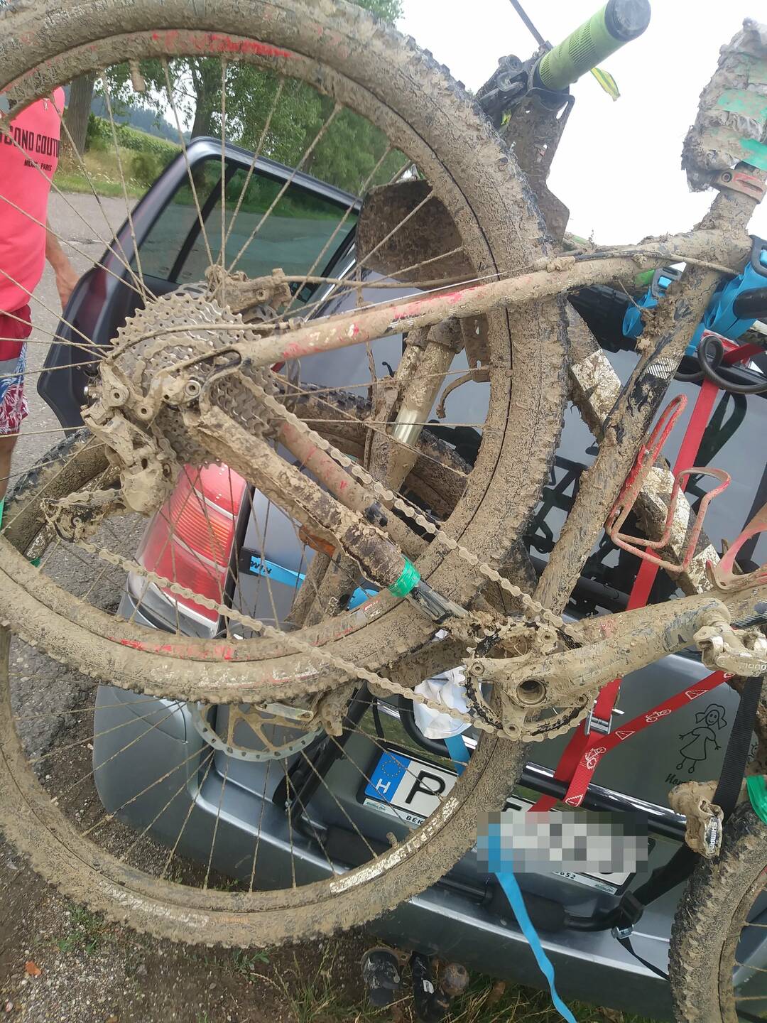 Hazafelé félúton... miért nem csapattuk le a verseny után rögtön? Mert alulméretezték a szervezők kicsit a mosási lehetőségeket. Arra senki sem gondolt hogy egy totális sárdagonya lesz az egész pálya, így asszem 5 Karcher mosó jutott a többszáz bringásra, meg egy slag amiből épphogy csak csepegett a víz, ezt értsd szó szerint. A tusoló ami előző nap ki lett alakítva, egyszerűen eltűnt a verseny napjára. Vagy eldugták valahova, de nem volt sehol. Szóval egy üveg ásványvízzel kellett lefürdeni. A bringákat lemosni esélytelen volt, akkora sorbanállás volt. Szóval megettük a tésztát, kicsit lézengtünk aztán csomagoltunk és go haza.