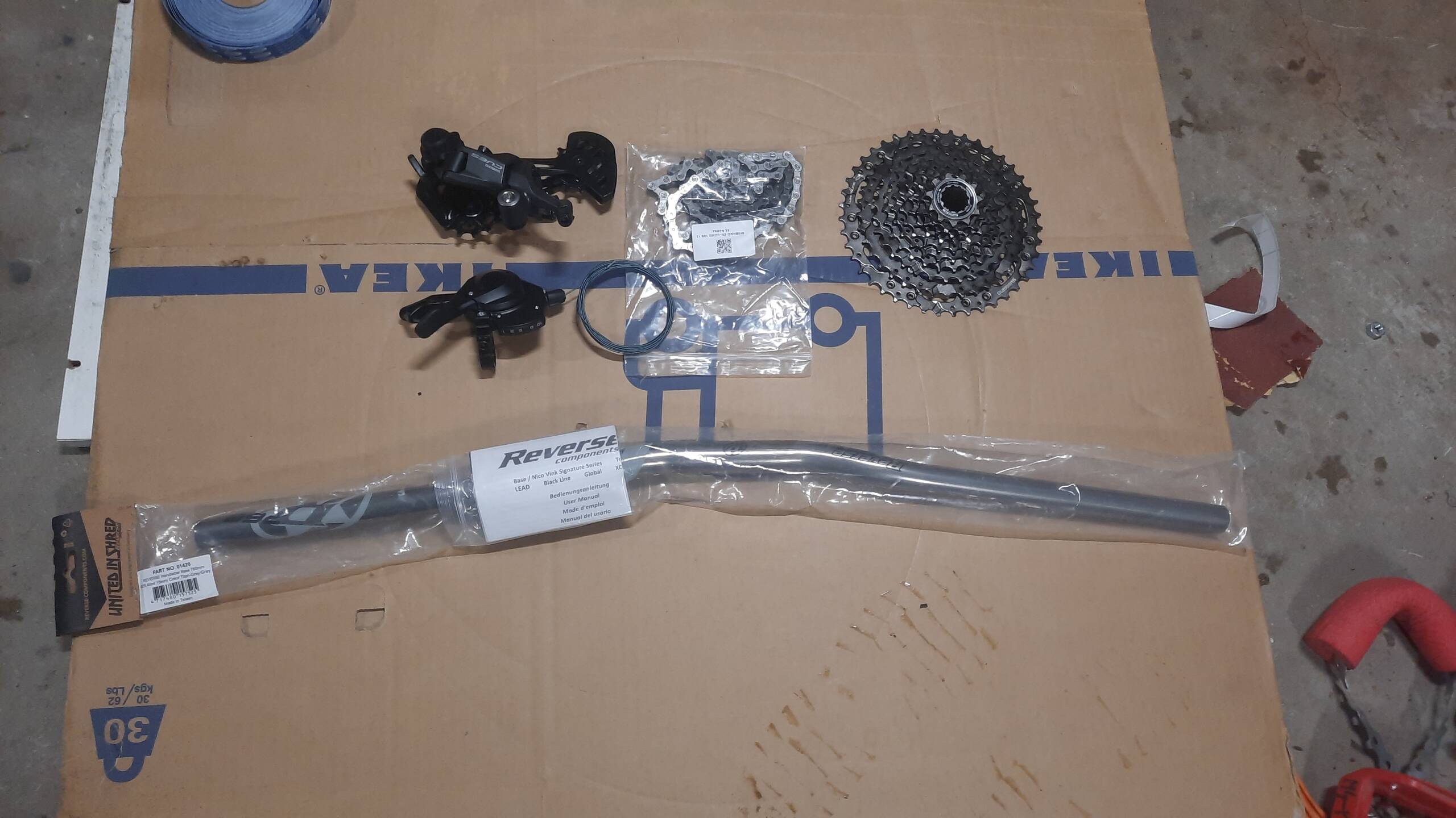Shimano Cues 10 sebességes, 11-43 groupset és egy Reverse Components kormány.
