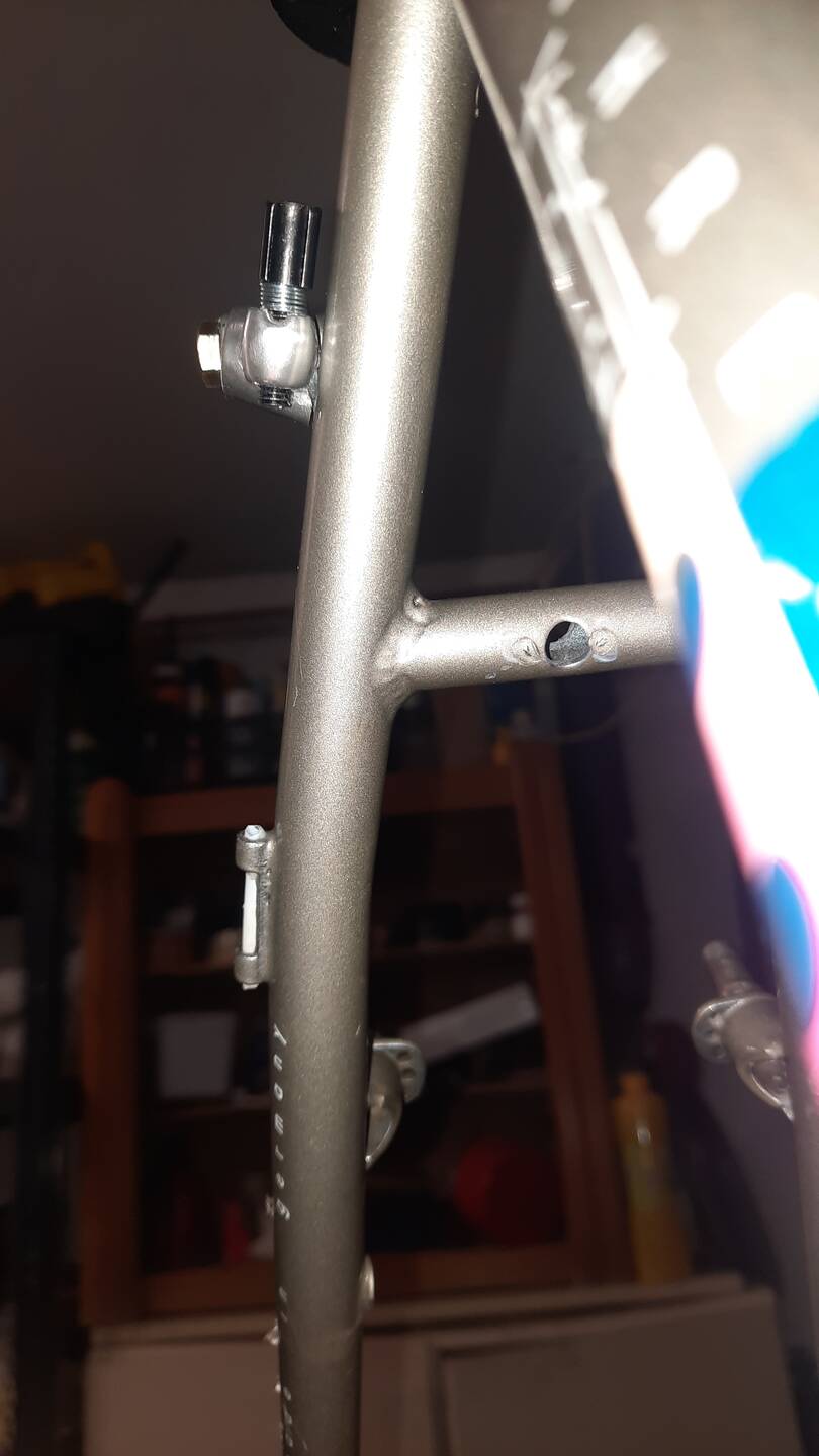 A támvilla oldalán a tartóban a fehér bigyó.. na az az a béléscső, ami állítólag végig hosszan vezette a szálat. Adtak a vázhoz egy kb. 10 centis "mintát", abból ragasztottam be oda FBS-sel egy kisebb darabot.