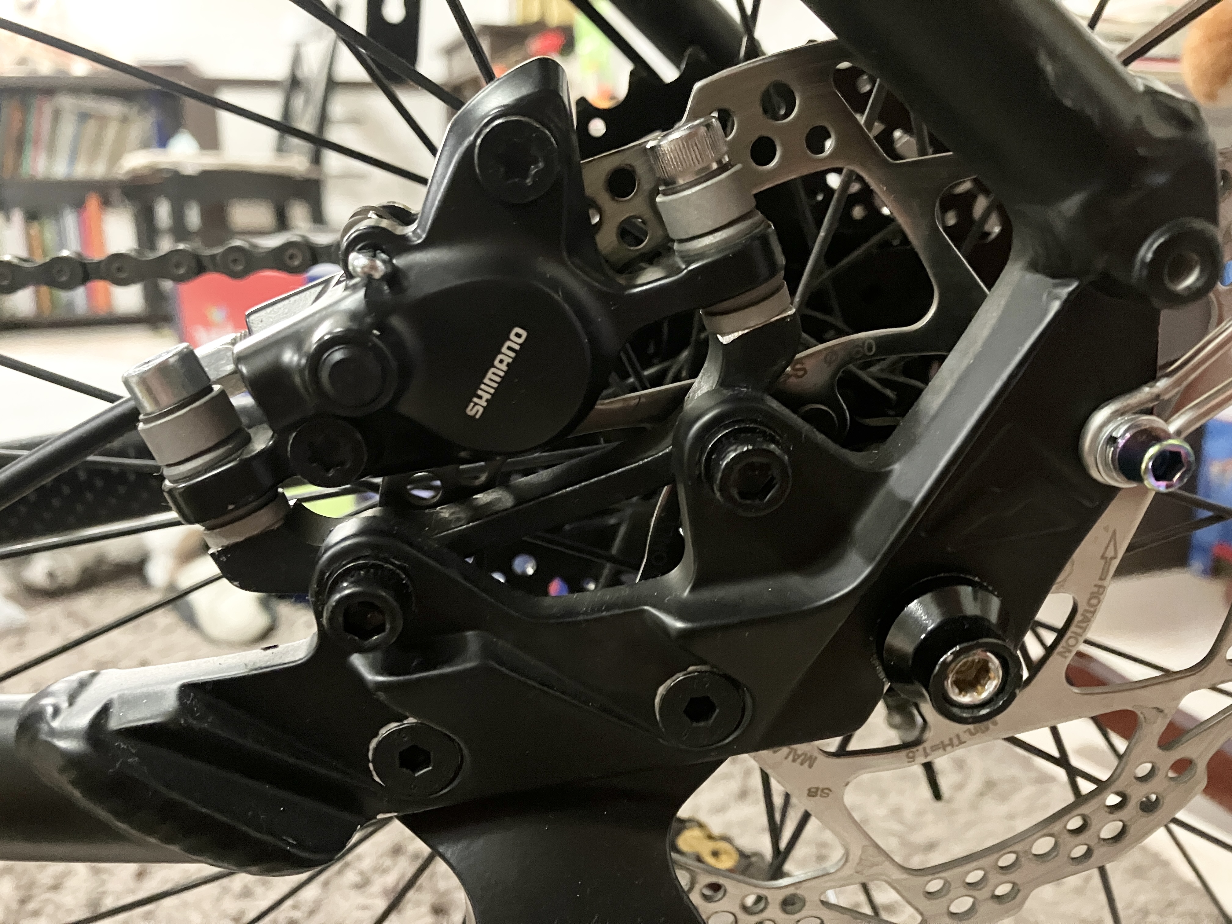 Valami szakembör lesíkolta a váz fékrögzítési pontjait. Meghozzá elég sokat. Gondoltam tök jó, akkor ez már biztosan pontosabb, mint a gyári. Óhogyne. Olyan ferde volt mint a f… fal.