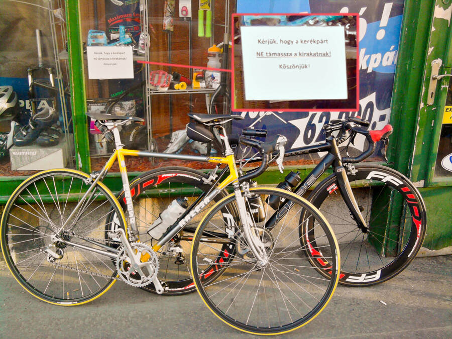 De a felirat szerint "a kerékpárt" ne támaszd oda.. ezek meg már "kerékpárok", tehát oda lehet:)